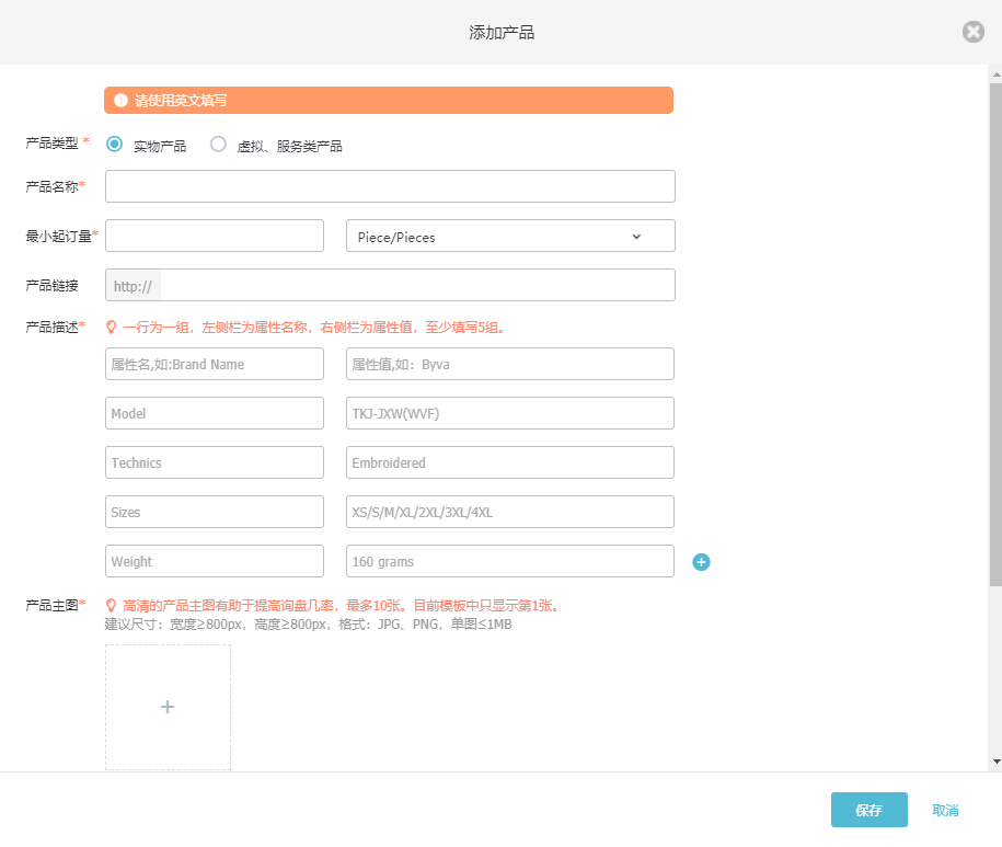 第一步,PA真人国际外贸通客户后台打开云邮通,创建开发信模版并填写产品详细信息。