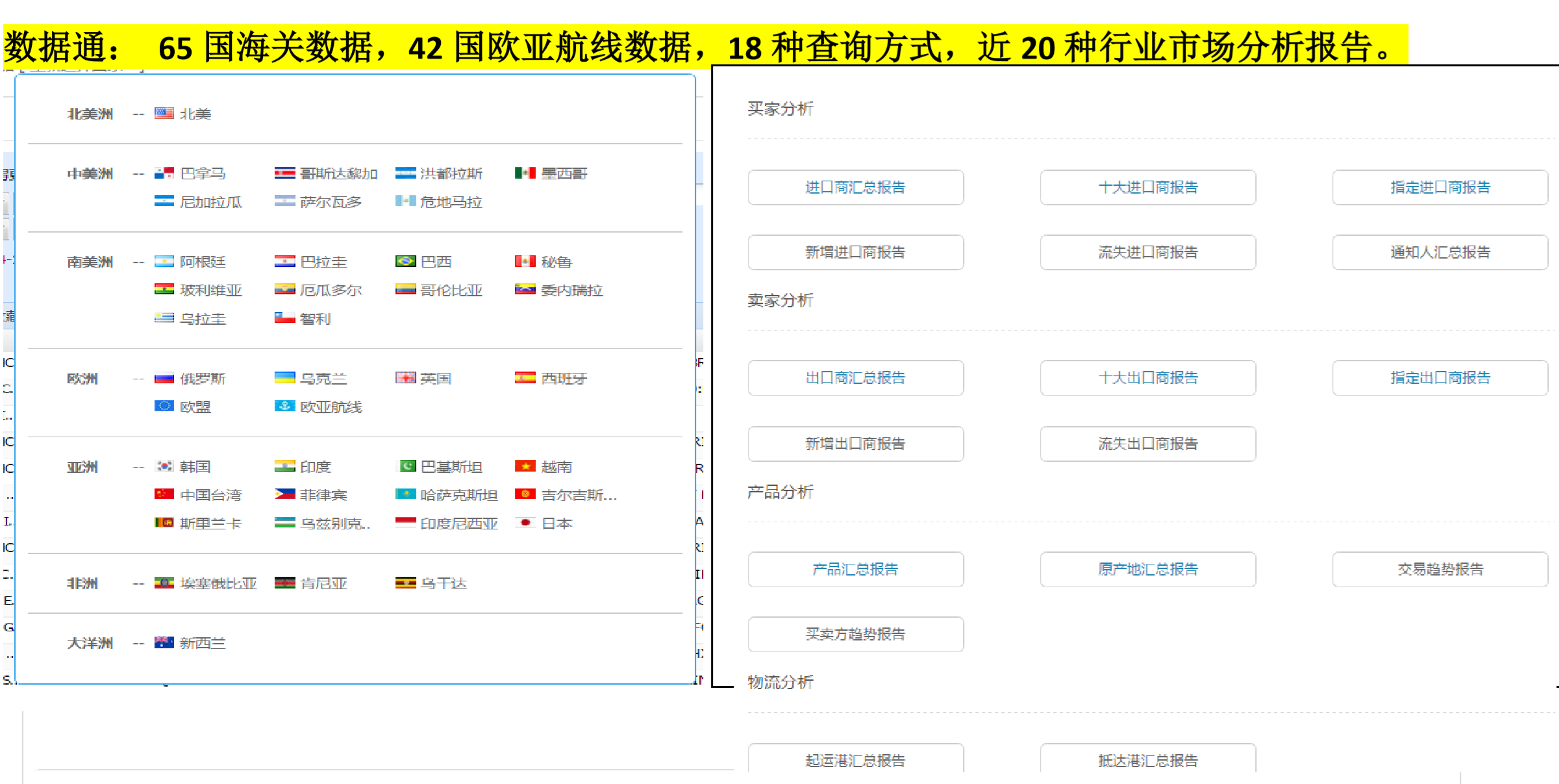 PA真人国际海关数据库,实时给予全球涵盖65国海关数据,42国欧亚航线数据,100+亿实时贸易数据,定位1.8亿全球企业信息,帮助您分析全球市场贸易趋势及分布,为您的产品快速、精准、科学地锁定热销国家和新兴市场。